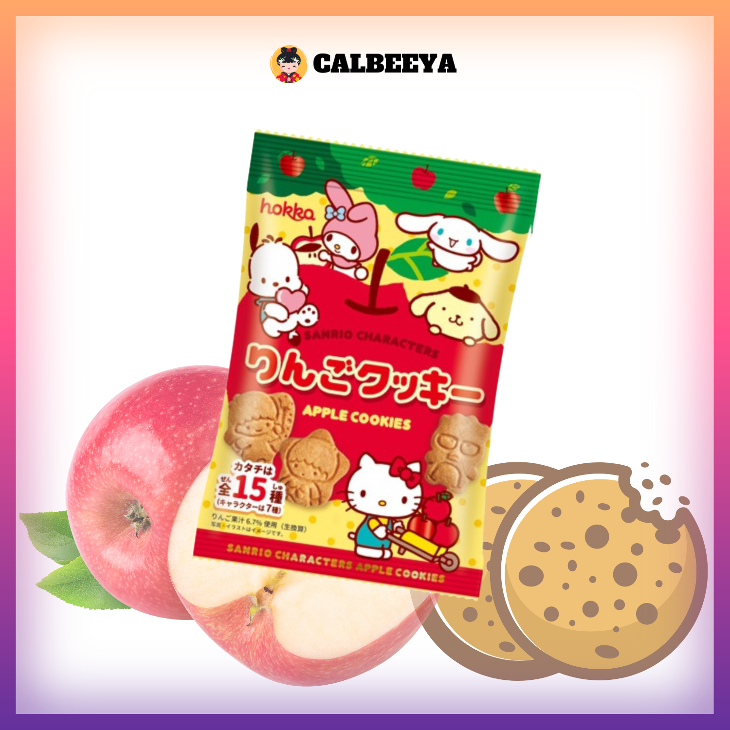 Introducing cute apple-flavored cookies in the shape of Sanrio characters! These cookies, with a refreshing taste packed with the fruity goodness of apples, come in a total of 15 different shapes. You'll be lucky if you find "Hello Kitty holding an apple," which has a 1/150 chance of being included♪ Available in a 50g flat bag type and a 4-pack type containing 56g (14g x 4 bags).