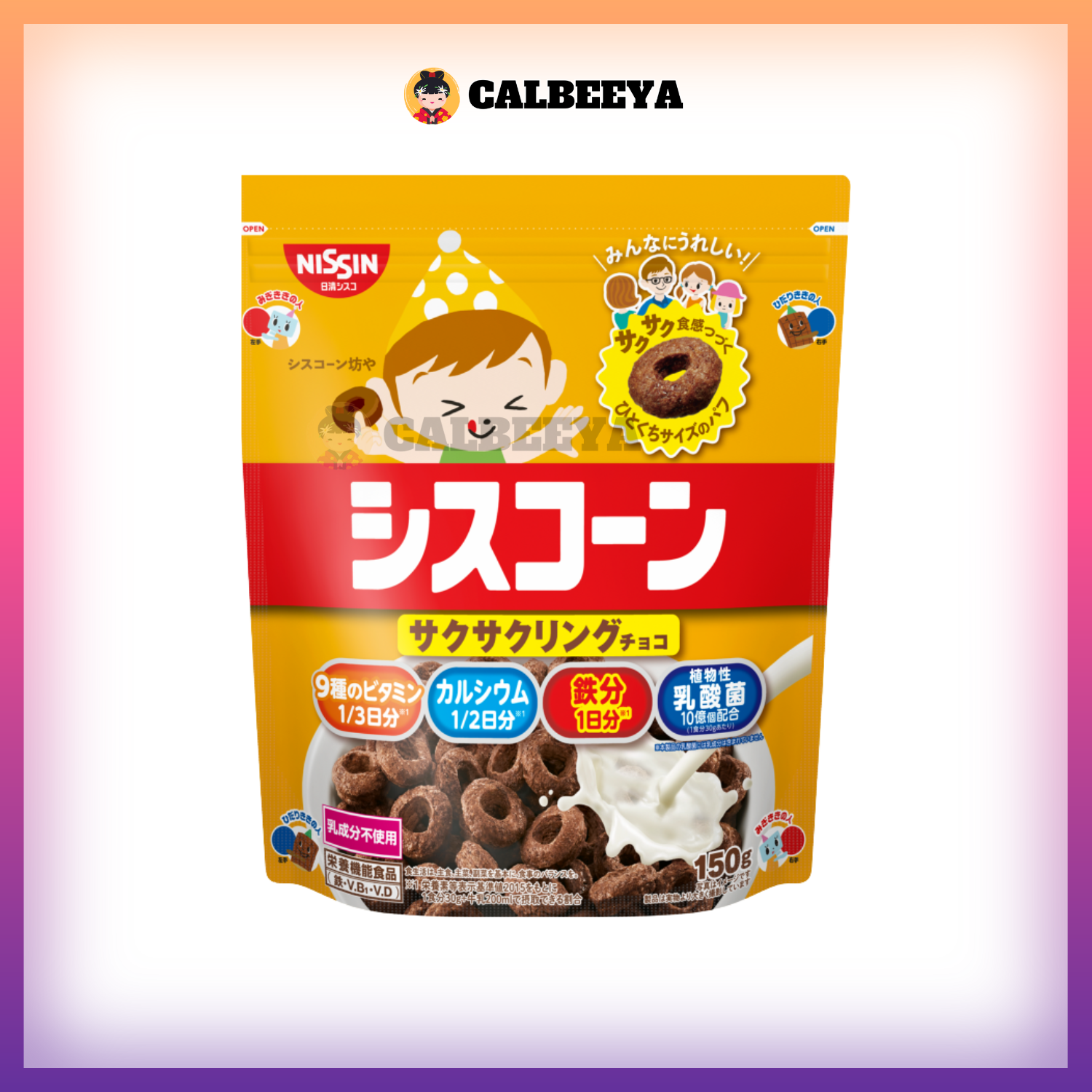 Ring-shaped puffed cereal with a crunchy texture and rich chocolate flavor. Contains 1 billion plant-based lactic acid bacteria per serving (30g). When you eat one serving (30g) with 200ml of milk, you can consume one day's iron, half the daily calcium, and more than one-third of the nine vitamins you need. Dairy-free
