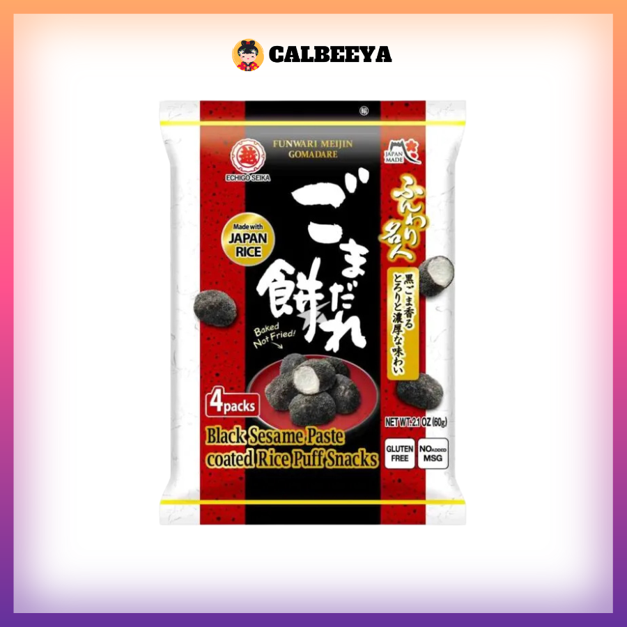 Indulge in Funwari Meijin Sesame Gomadare, featuring a soft, 100% Japanese rice dough infused with luscious black sesame paste for a decadently rich flavor. Experience the delightful aroma and authentic Japanese essence as it melts in your mouth.