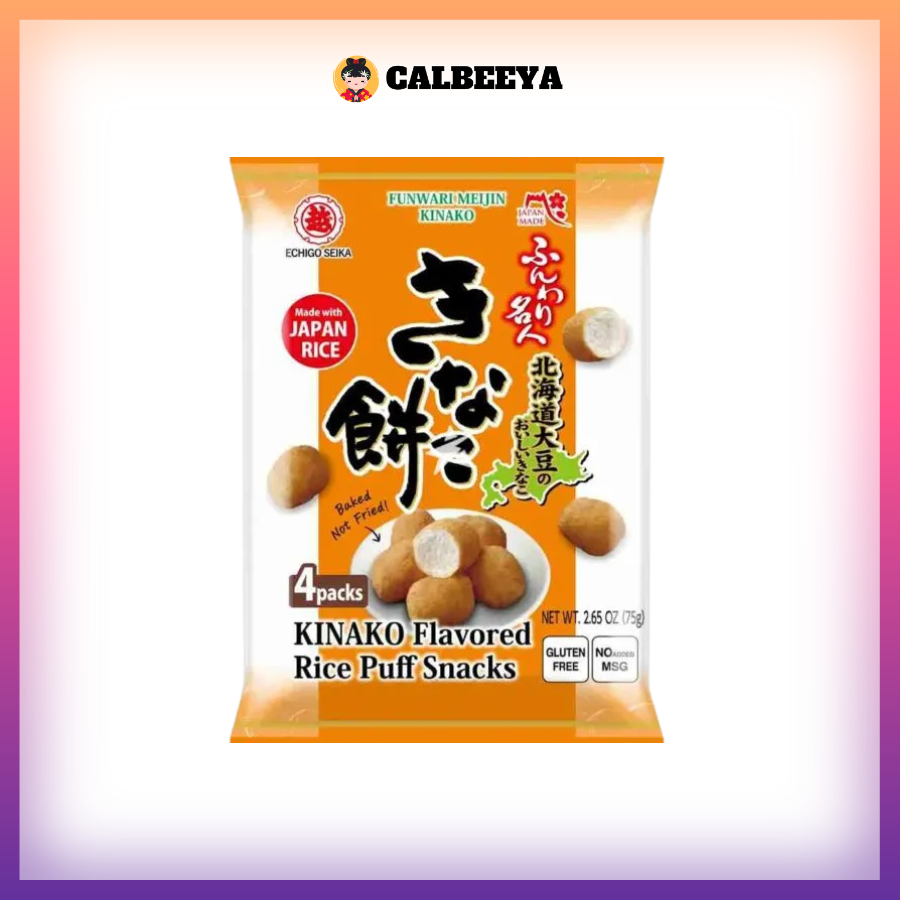 Experience the delightful softness of Funwari Meijin Kinakomochi, a treat that melts in your mouth! This fluffy rice snack is covered in a delicious Kinako powder crafted from premium Hokkaido soybeans, using 100% Japanese mochi flour. Kinako, a beloved health food in Japan, adds a unique touch to this indulgent snack.