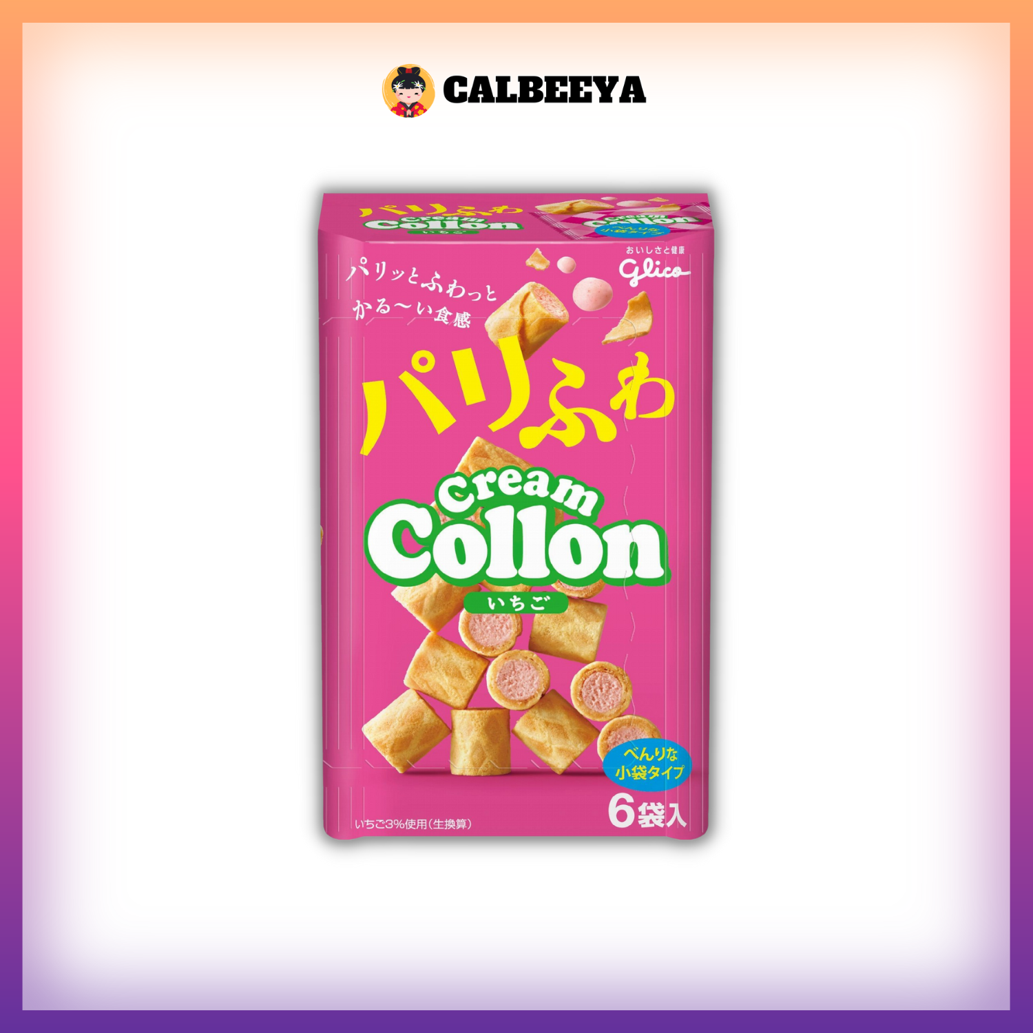 A light and fluffy strawberry cream is wrapped around a crispy waffle. The texture and flavor are addictive, making this a bite-sized mini dessert. It has a sweet and sour strawberry flavor.