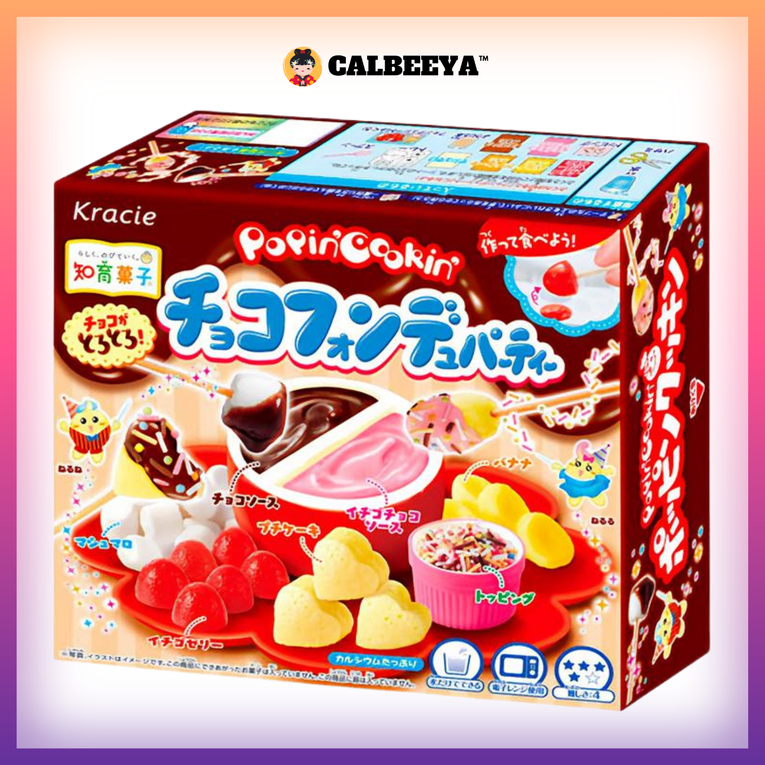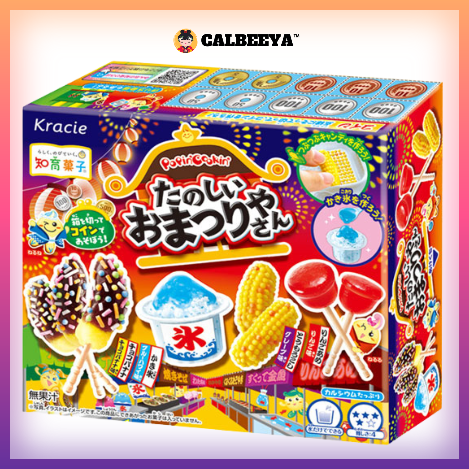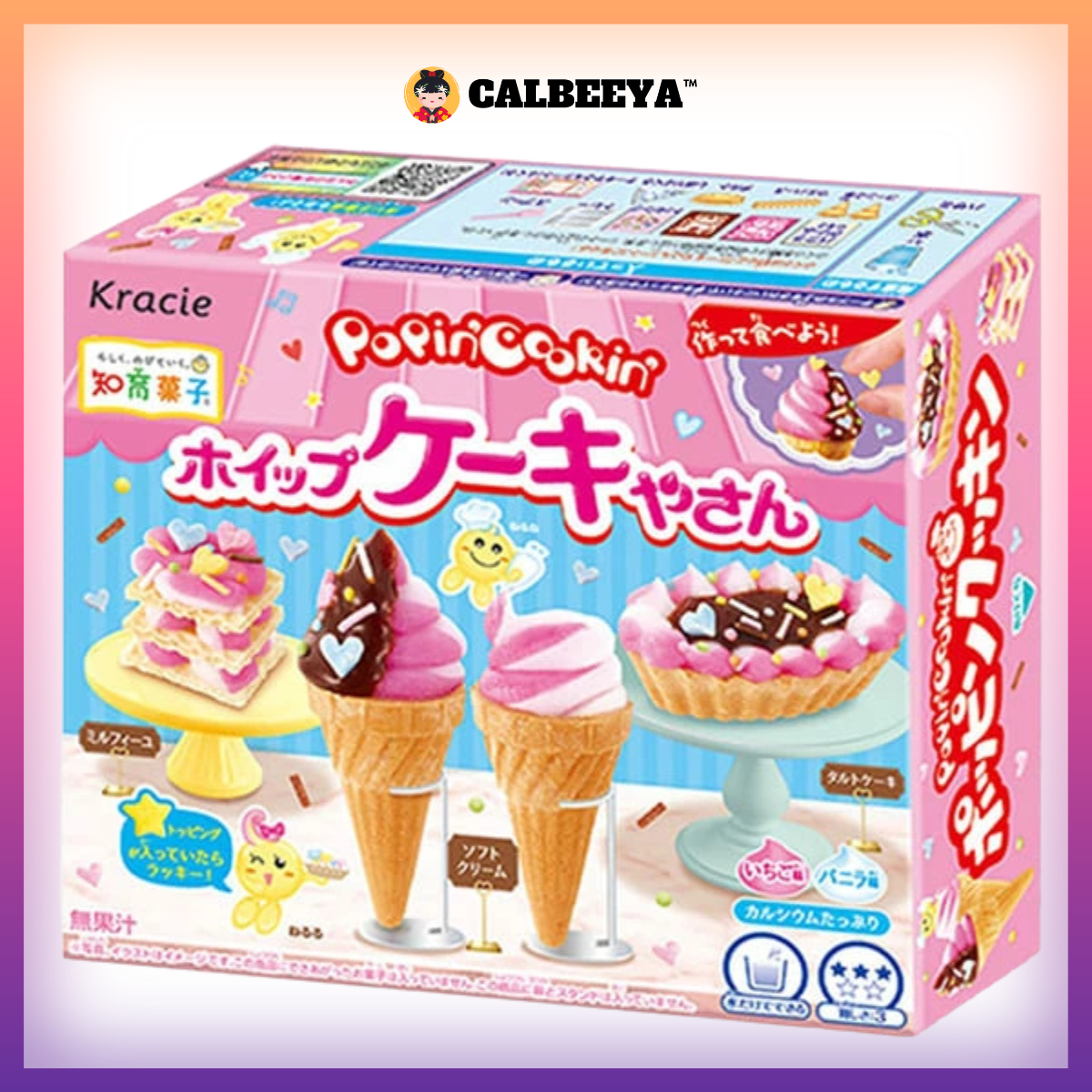 Ingredient:Sugar (domestically produced), starch, non-glutinous rice, vegetable fats and oils, dextrin, glucose, powdered egg white, foods with milk as the main ingredient, cocoa powder, skimmed milk powder, powdered soy sauce, lactose, salt, modified starch, calcium carbonate, colorings (caramel, vegetable coloring, gardenia), leavening agent, emulsifier, acidulant, sodium caseinate, flavoring, gelling agent (sodium alginate), calcium sulfate, sodium pyrophosphate, (contains wheat, eggs, dairy products, soybeans)