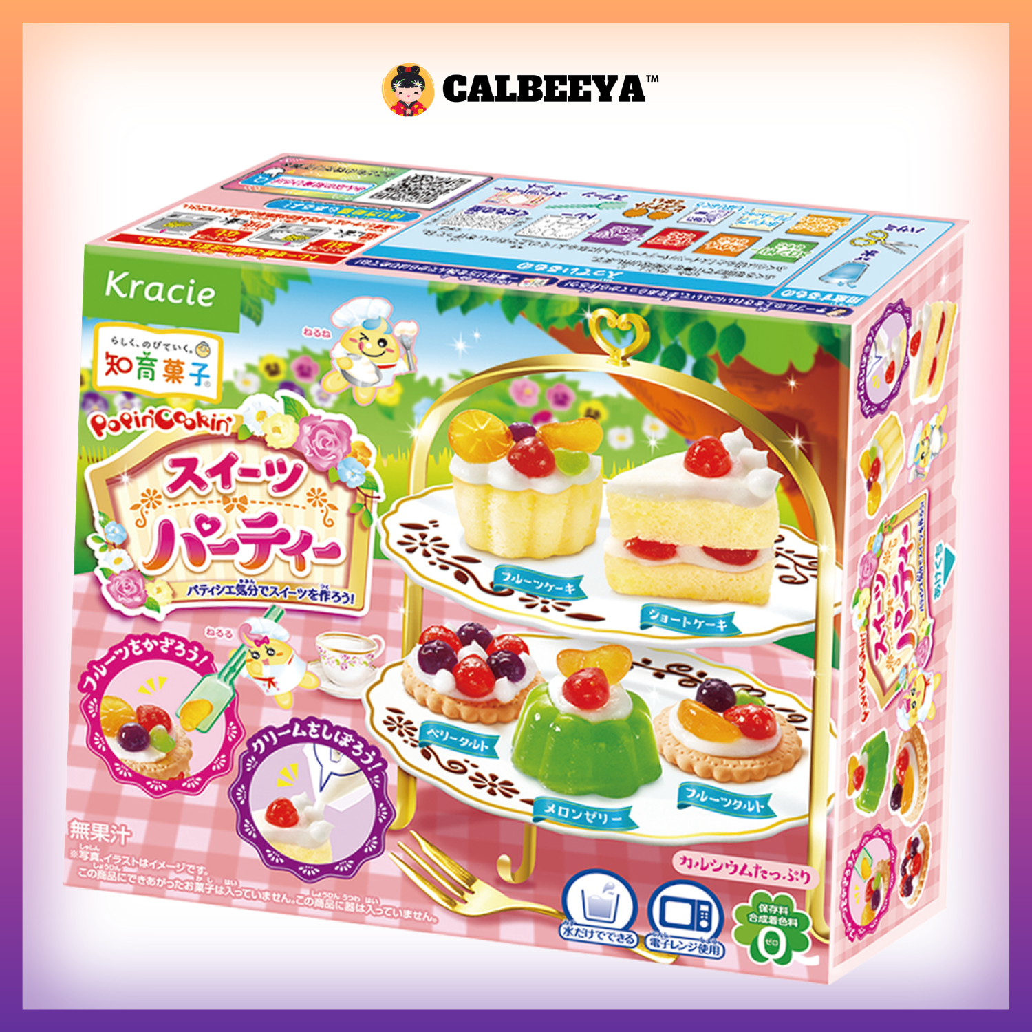 成分:砂糖(日本制造)、糊精、淀粉、植物油、乳糖、玉米糖浆、明胶、发酵乳、乳蛋白、葡萄糖/变性淀粉、酸味剂、碳酸钙、香料、凝胶剂(海藻酸钠)、山梨醇、色素(焦糖、栀子、植物色素、乌贼墨色素、红曲)、增稠多糖、乳酸钙、维生素C、硫酸钙、乳化剂、甘油、焦磷酸钠(含有乳制品、乌贼及明胶成分)
