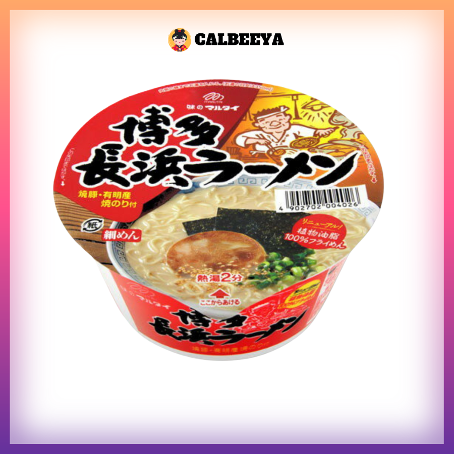 这款拉面使用细面条,并以 100% 植物油炸制而成。汤底采用猪肉提取物,还原博多长滨拉面的正宗猪骨汤风味。配料包括青葱、烤芝麻和木耳,另附有两片来自有明的烤海苔。