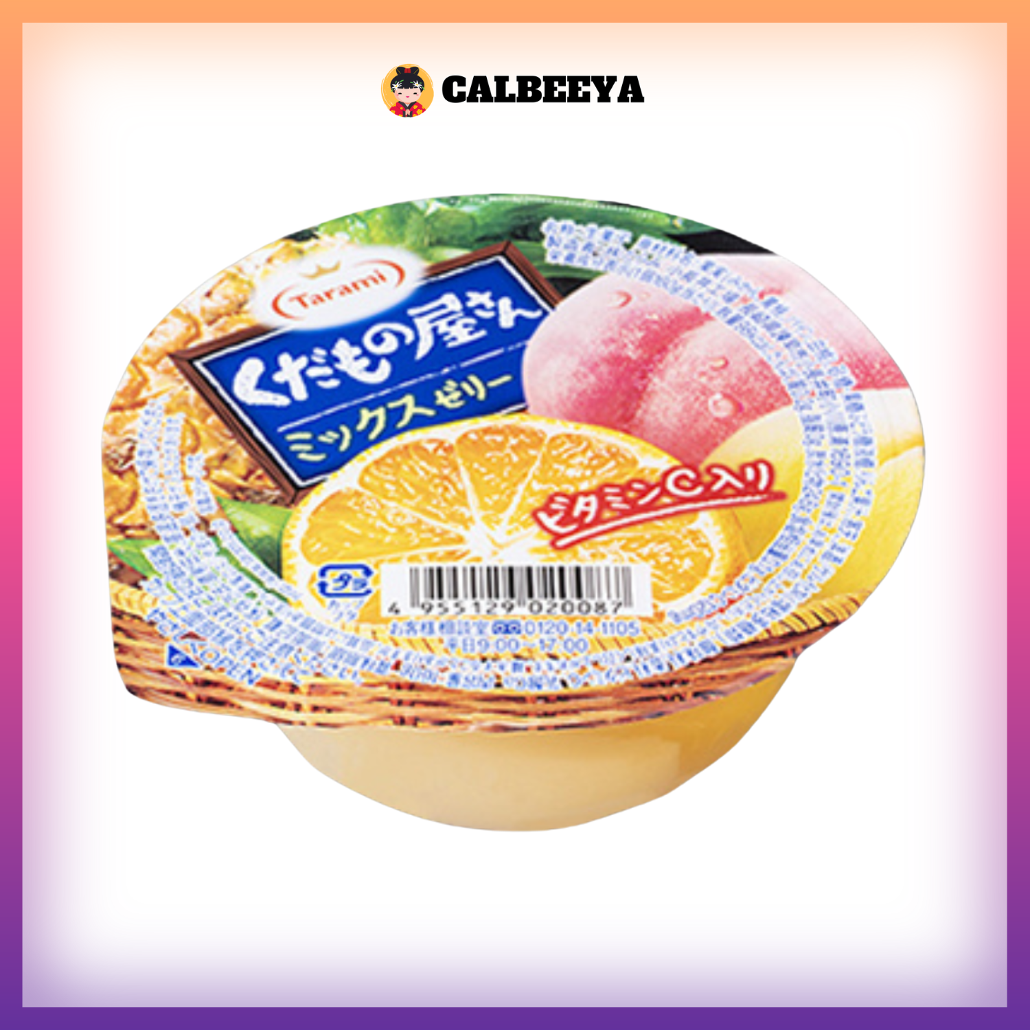Ingredient:Fruit (mandarin orange (China), yellow peach, white peach, pineapple), sugar, fructose glucose liquid sugar, apple juice, liqueur, agar/gelling agent (polysaccharide thickener), acidulant, flavoring, vitamin C, calcium lactate