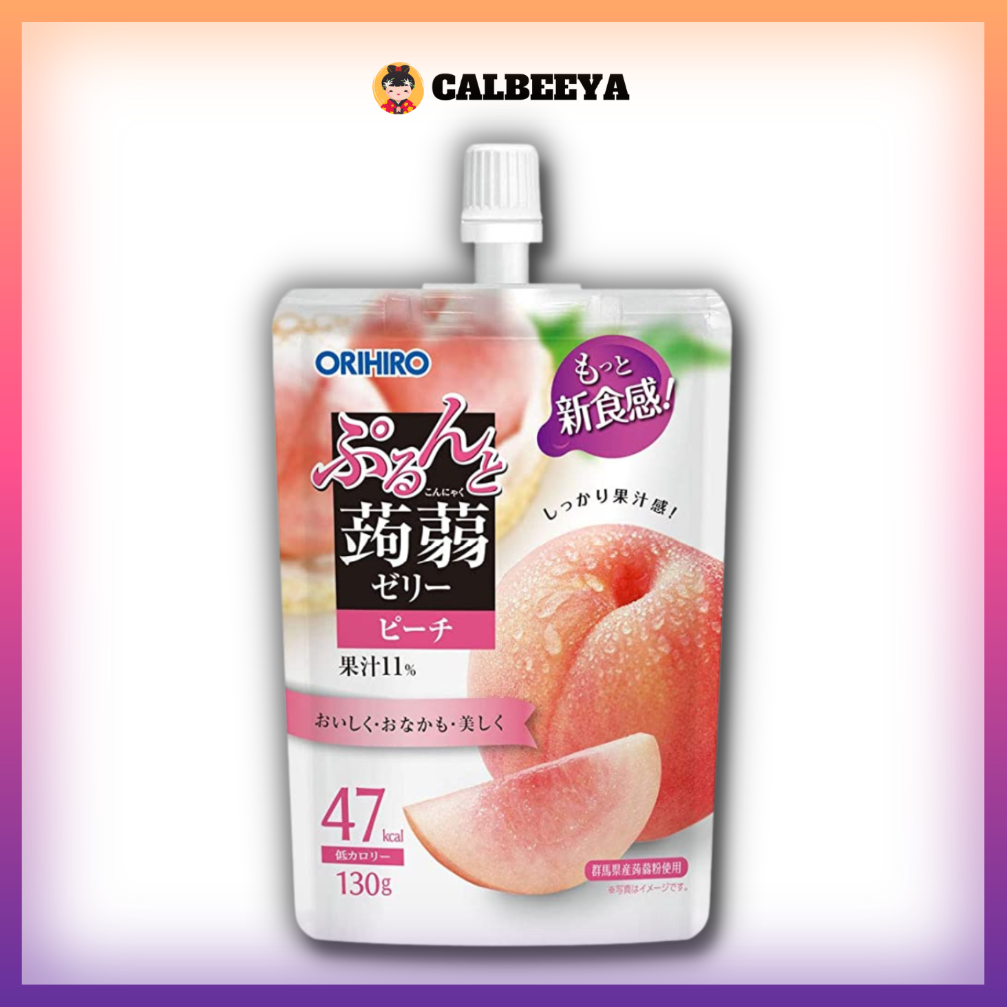 This delicious peach-flavored jelly contains konjac powder and has a nice texture, making it low in calories (47 kcal).