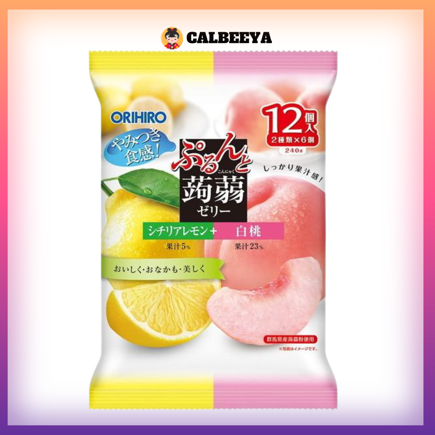 White Peach: High-fructose corn syrup (made in Japan), sugar, fruit juice (peach, apple), konjac flour/acidulant, gelling agent (thickening polysaccharide), flavoring, potassium chloride, sweeteners (acesulfame potassium, sucralose).